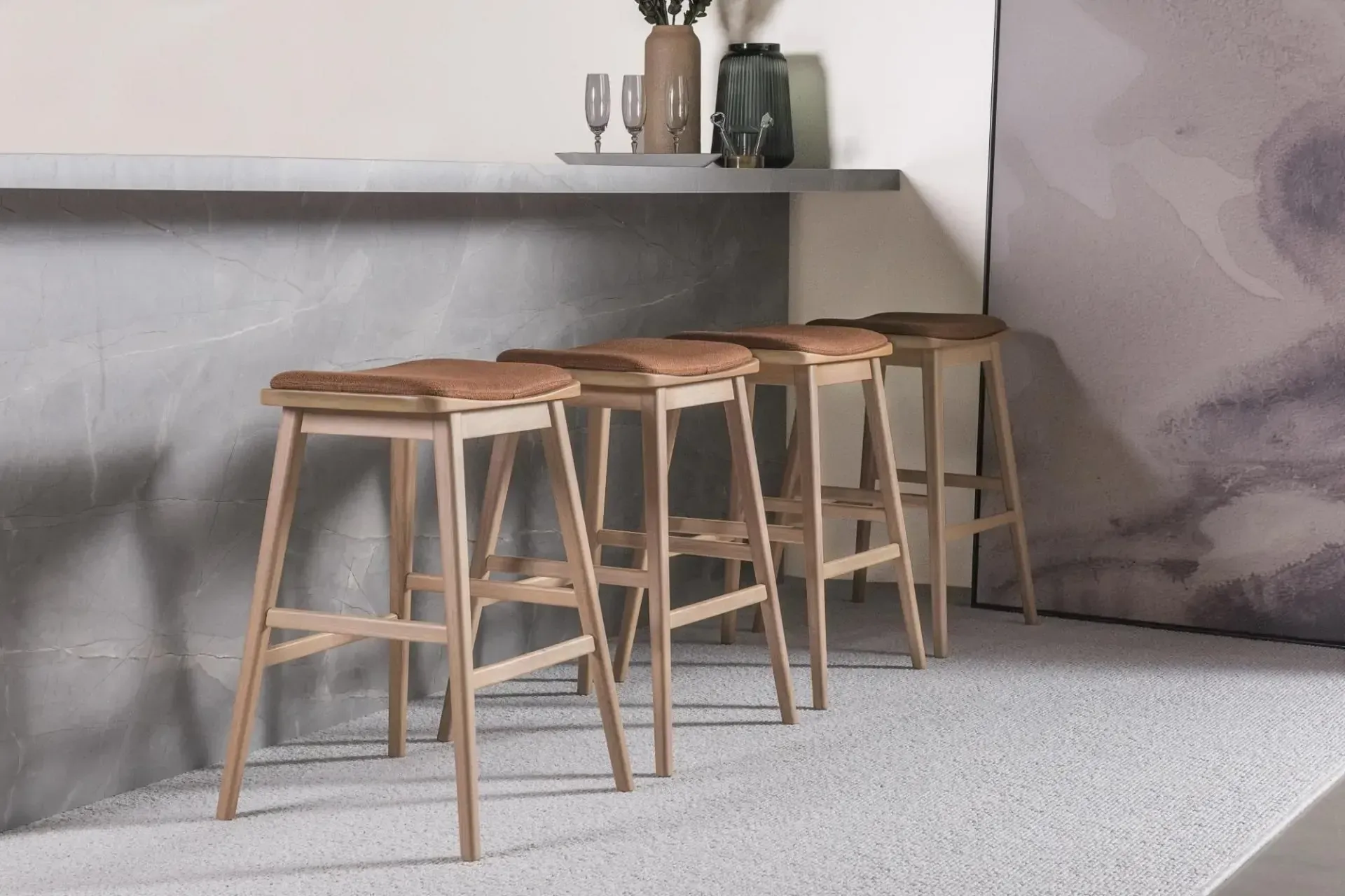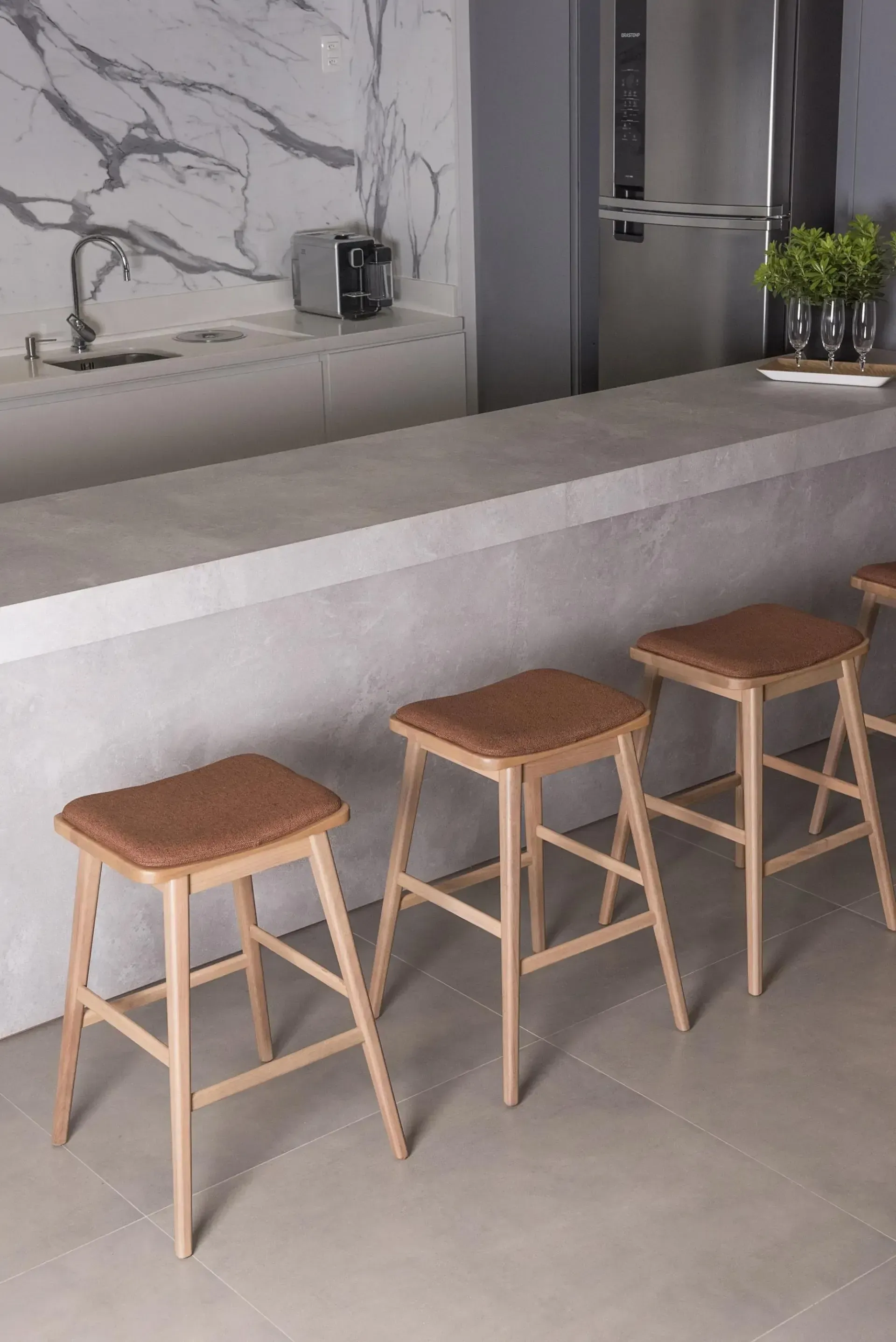 Com design atemporal e formas geométricas, a banqueta Kim é a escolha ideal para dar personalidade e estilo a qualquer ambiente, seja estofada ou em madeira.