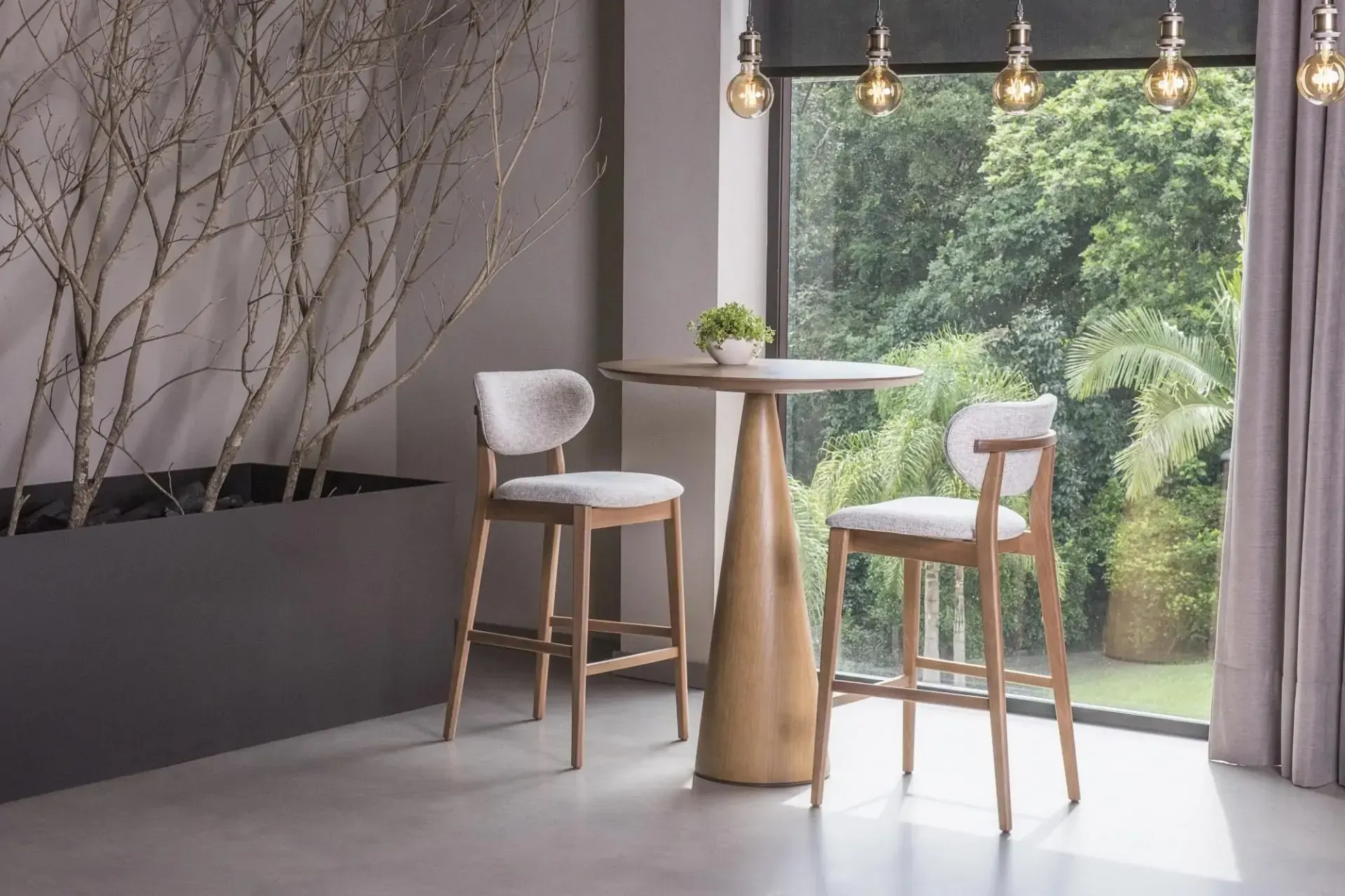 A elegância e as curvas suaves é o que se destacam na banqueta Noa. O encosto e o assento estofados oferecem conforto e sua estrutura favorece seu deslocamento pelo ambiente.