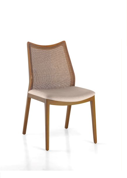 Com grande personalidade, a cadeira Júlia se destaca pelo elaborado trabalho de marcenaria, pelos seus ângulos acentuados e pela aplicação de tela ratan em seu encosto, recurso que dá muito conforto ao sentar. Um ótimo exemplo de como elementos vazados na decoração trazem respiro e leveza para os ambientes. É a garantia de uma cadeira perfeitamente ergonômica.
