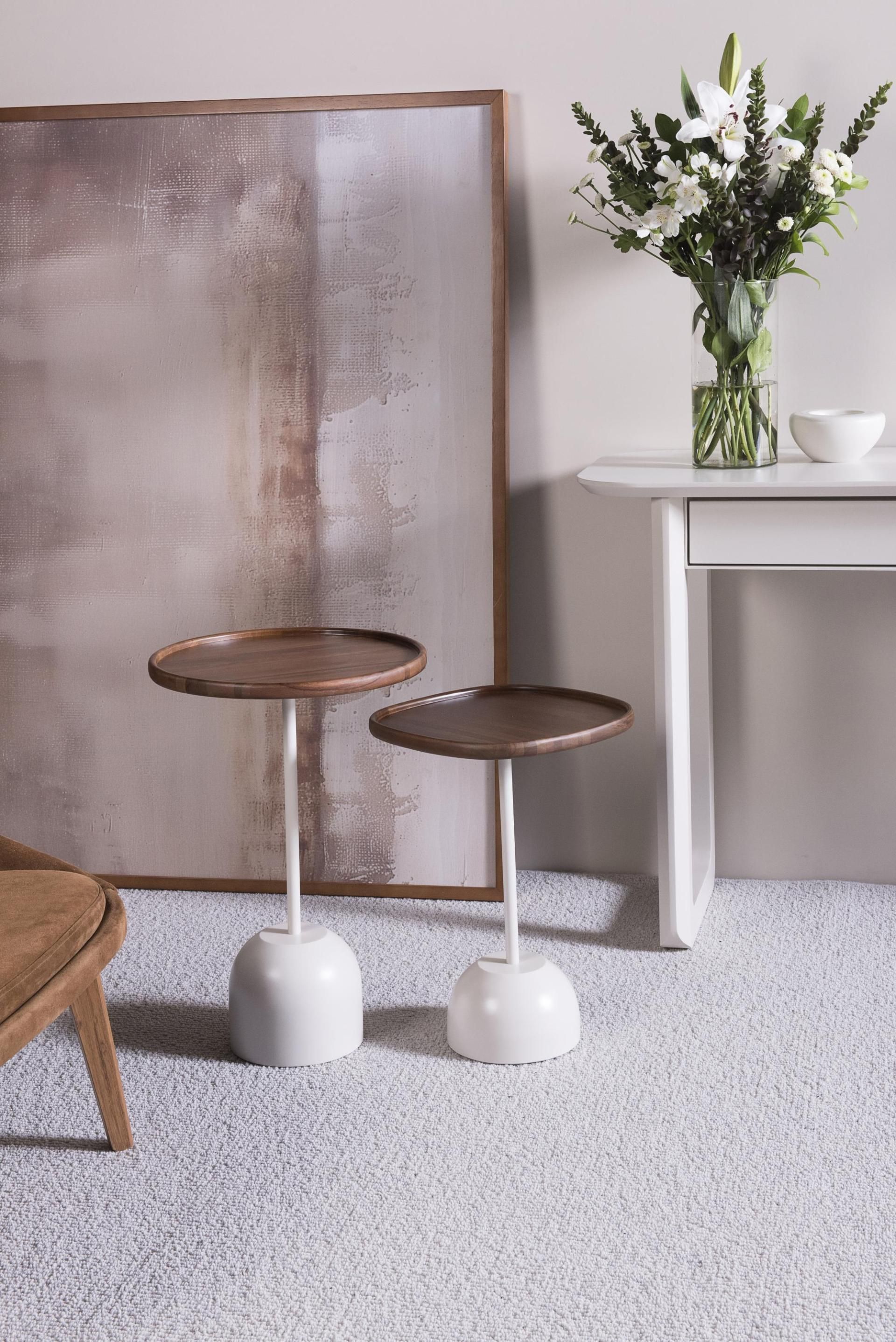 Disponível em diferentes alturas, a mesa de apoio Kim é sofisticada e elegante, podendo somar sua funcionalidade em diferentes ambientes.